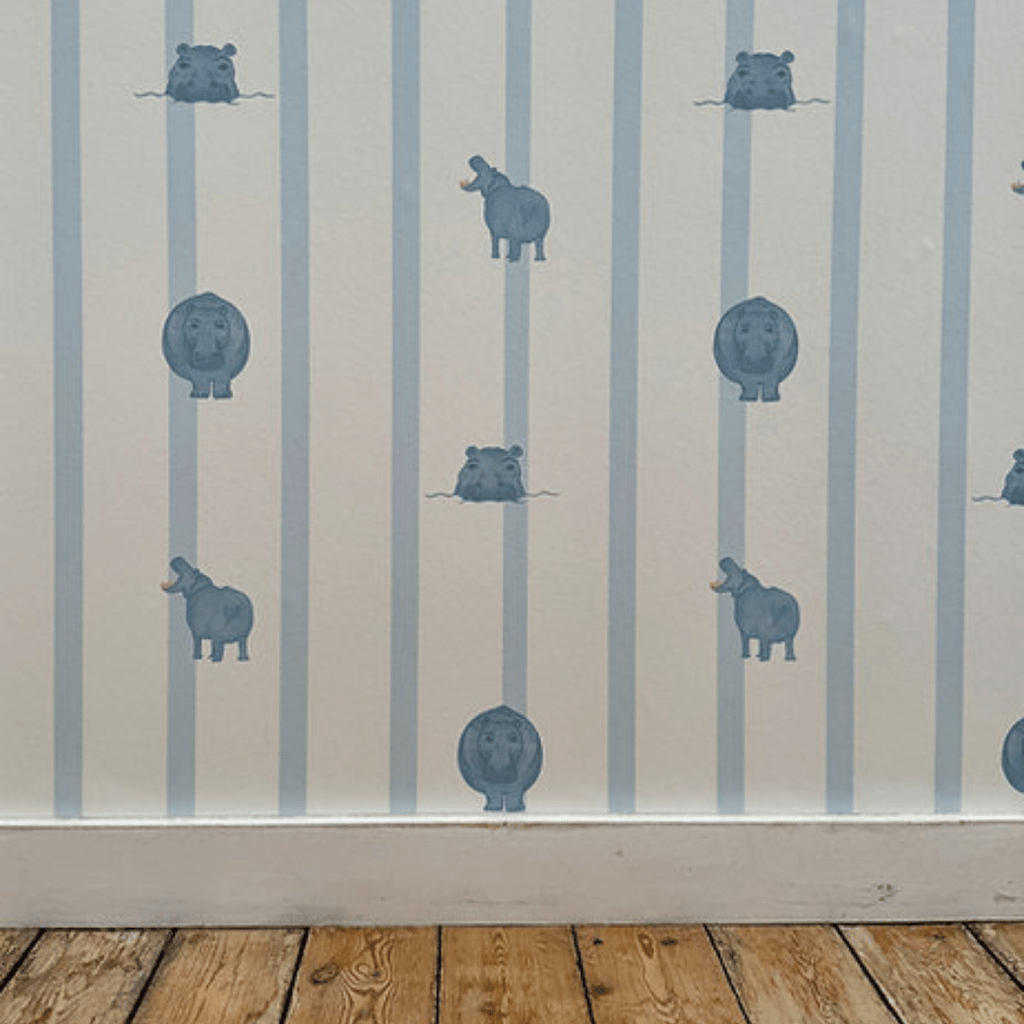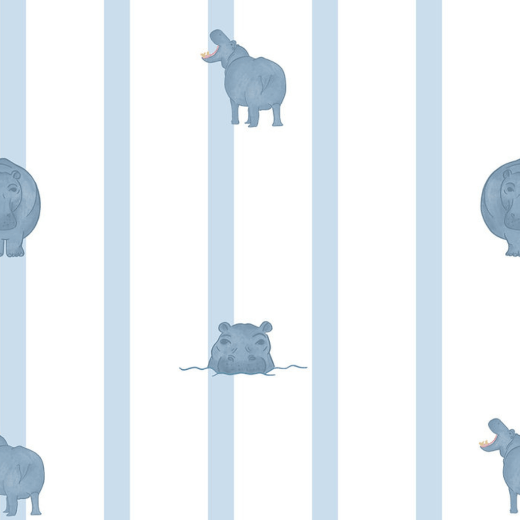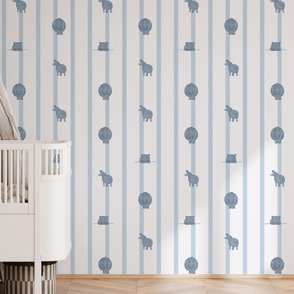 Bringen Sie ein Lächeln in den Kindergarten mit Paul, unser fröhliches Striped Blue Hippopotamus Tapete. Dieses charmante Design kombiniert sich Klassische Streifen Mit einem verspielten Nilpferd, was es perfekt für beide macht Ruhiges Babyzimmer Wie ein lebhaftes Kleinkindzimmer.