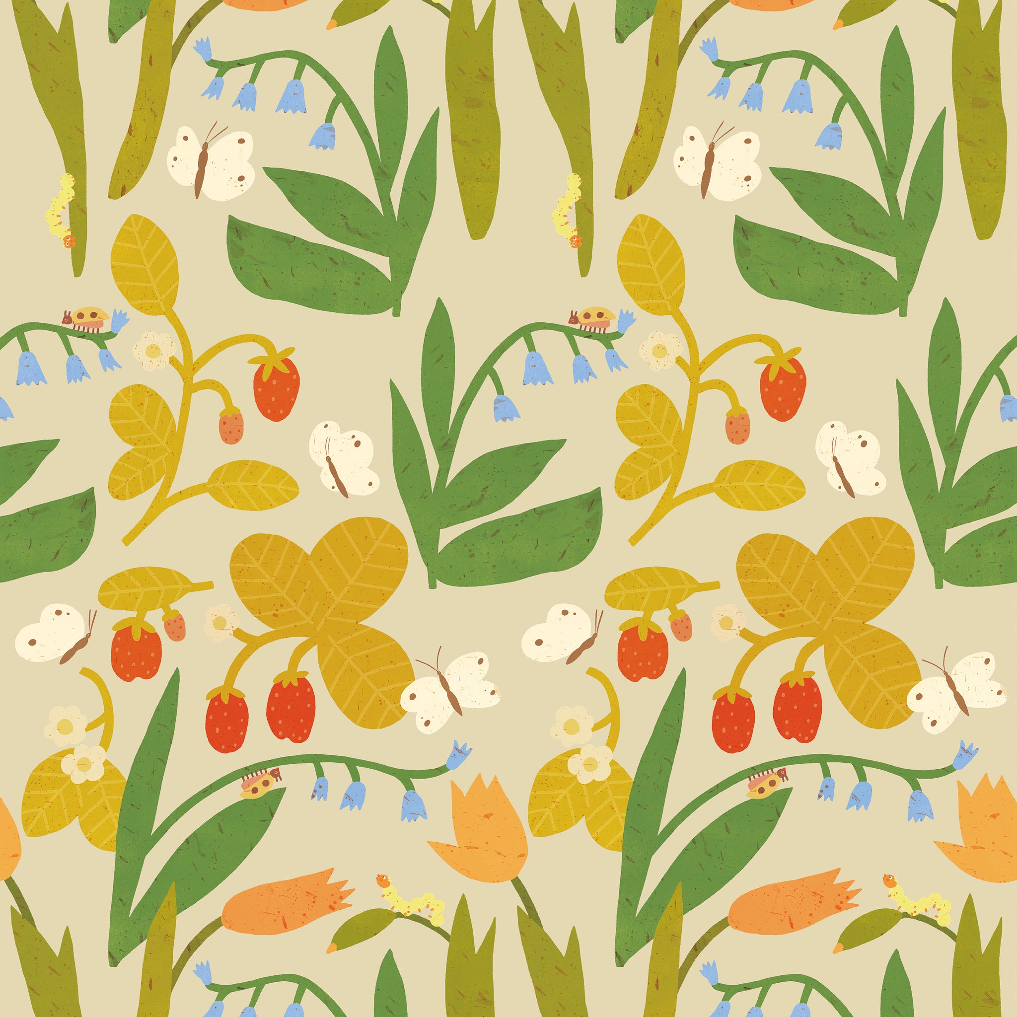 Behangstaal Meet Me at the Wall - Strawberry field - Pale beige - Lotte Dirks