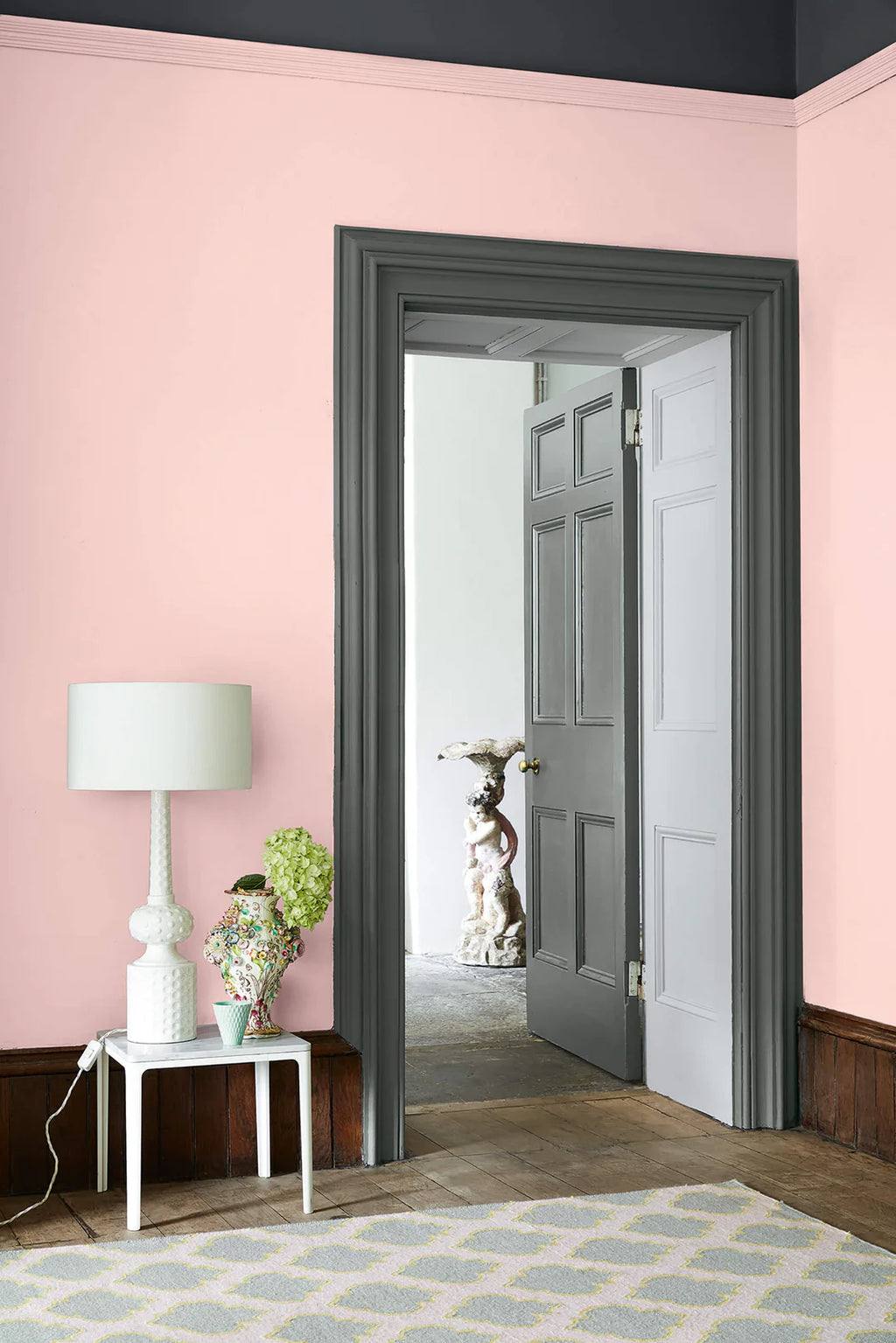 Combineer met warm wit, naturel hout, zacht grijs of vergrijsd groen voor een harmonieus geheel. Ideaal voor wie een zachte roze verf voor de kinderkamer zoekt met tijdloze charme..