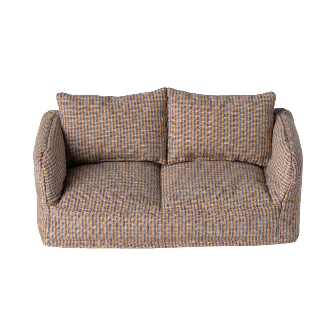 Lehnen Sie sich zurück und entspannen Sie sich auf dieser verrückten Bank von Maileg! Alle Familien brauchen eine weiche Couch, um sich auszuruhen. Die Mausfamilie kann alle bequem in diesem und sich amüsieren, sie passt perfekt in das Wohnzimmer der Mausfarm.