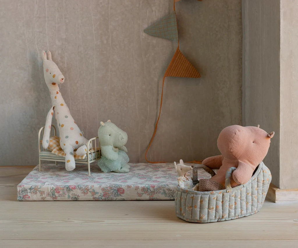 Treffen Sie die niedlichste Ballerina aus der Savannah: die Maileg Hippo mit Minzgrün -Rock. Hergestellt aus weichem Leinen, gefüllt mit recycelten Pellets und mit einem gewichteten Boden, so dass dieses Nilpferd ordentlich aufrecht sein kann - bereit für eine robuste Umarmung oder eine anmutige Pirouette im Puppenhaus.