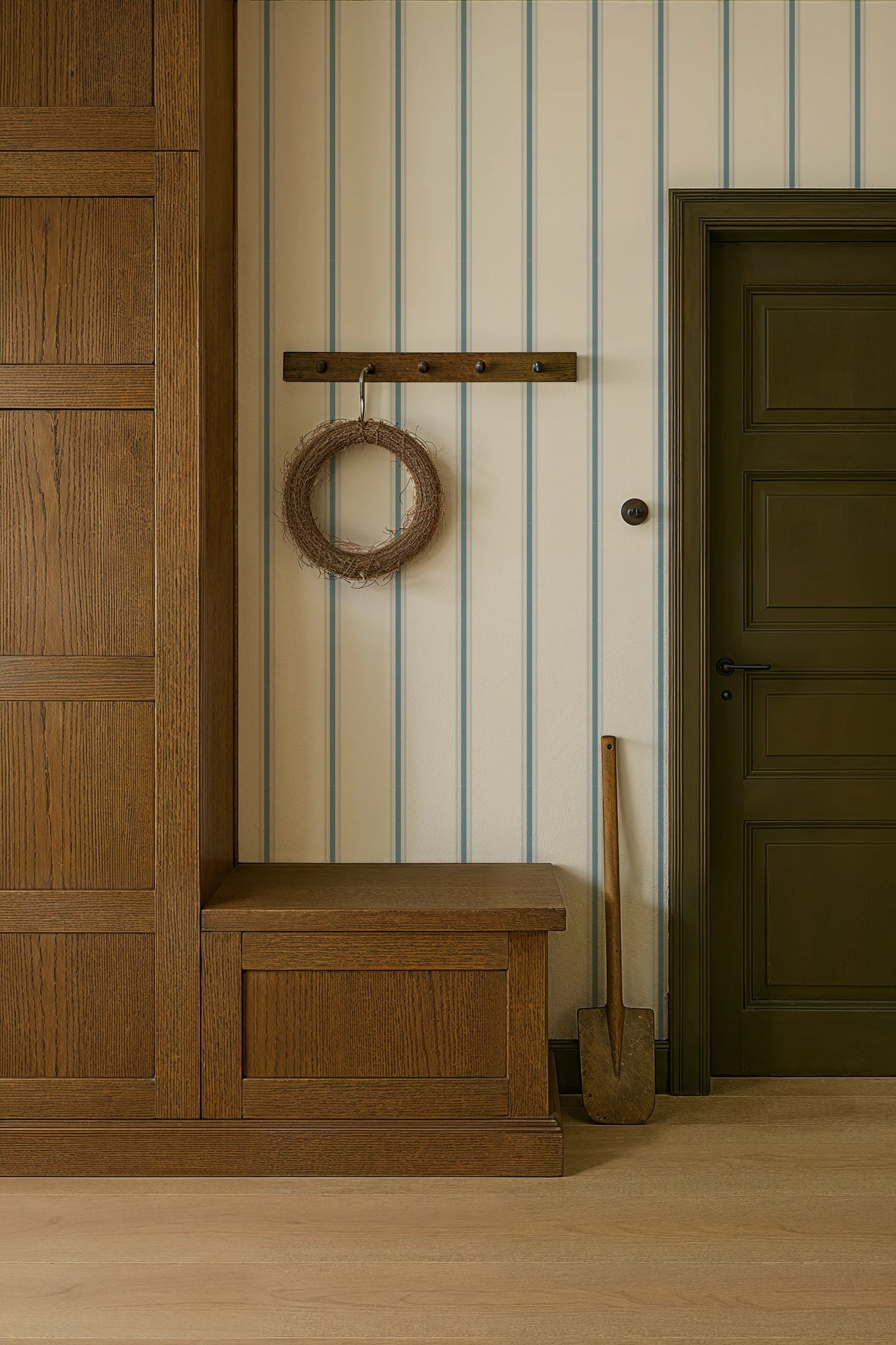 Het Summer Gray Finn behang is een verfijnde en eigentijdse interpretatie van de klassieke streep. De subtiele breedtes en zachte toonverschillen creëren een rustig ritme op de muur dat modern oogt, maar tegelijk tijdloos aanvoelt.