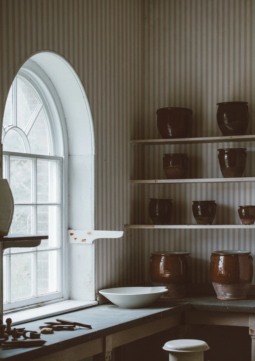 Geïnspireerd op maritieme tinten en de verfijnde meubelstoffen uit het 18e-eeuwse Frankrijk, combineert French een nautische uitstraling met tijdloze klasse. De streep oogt eenvoudig, maar het subtiele kleurcontrast geeft de muur diepte zonder te overheersen.