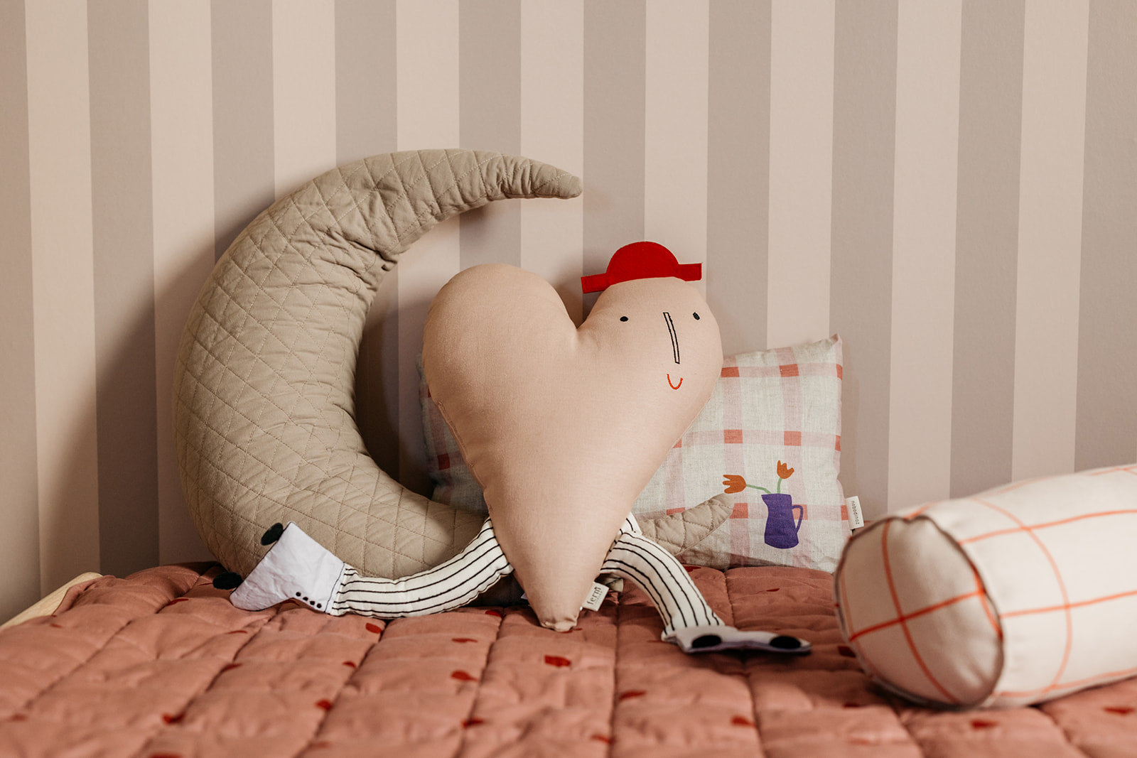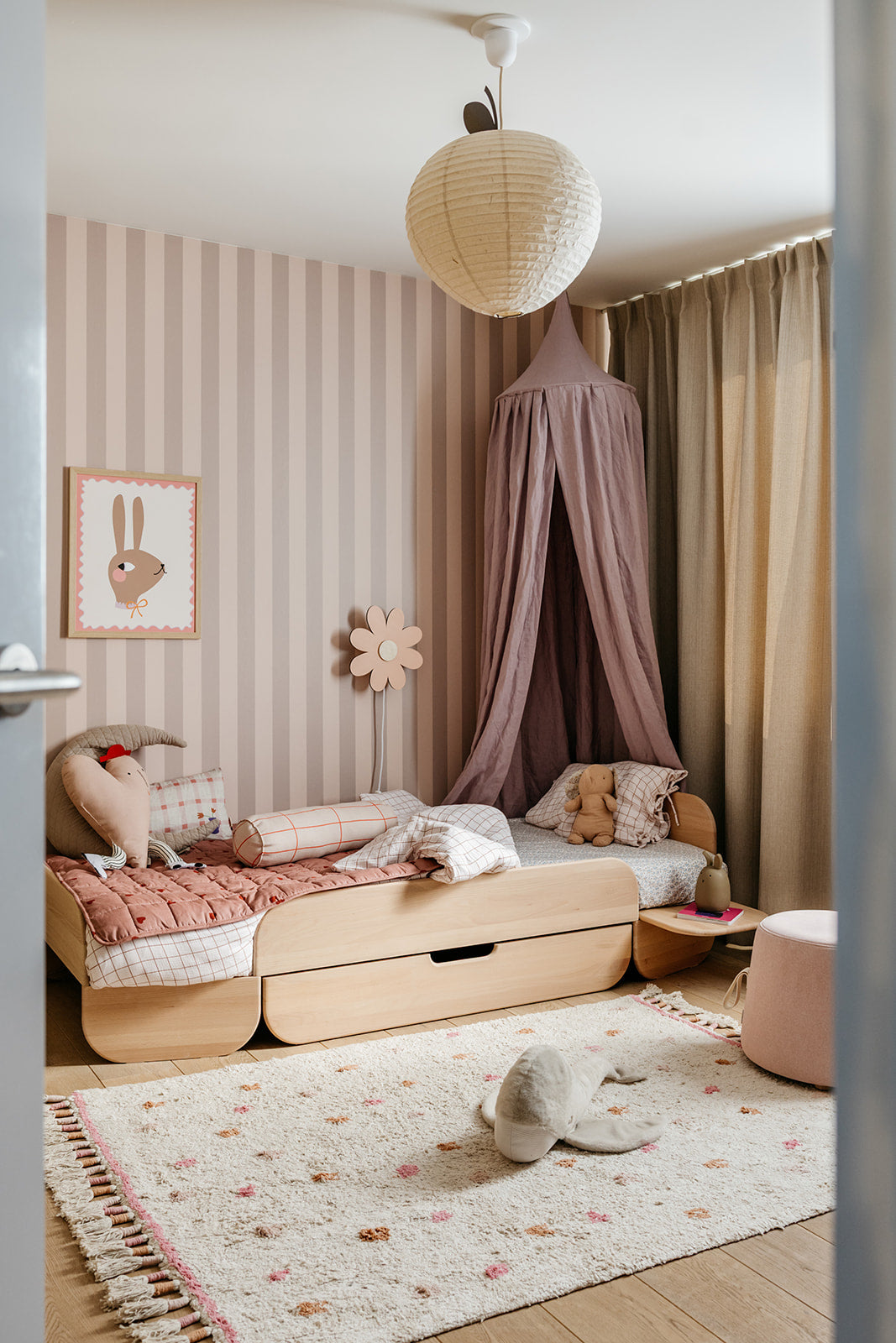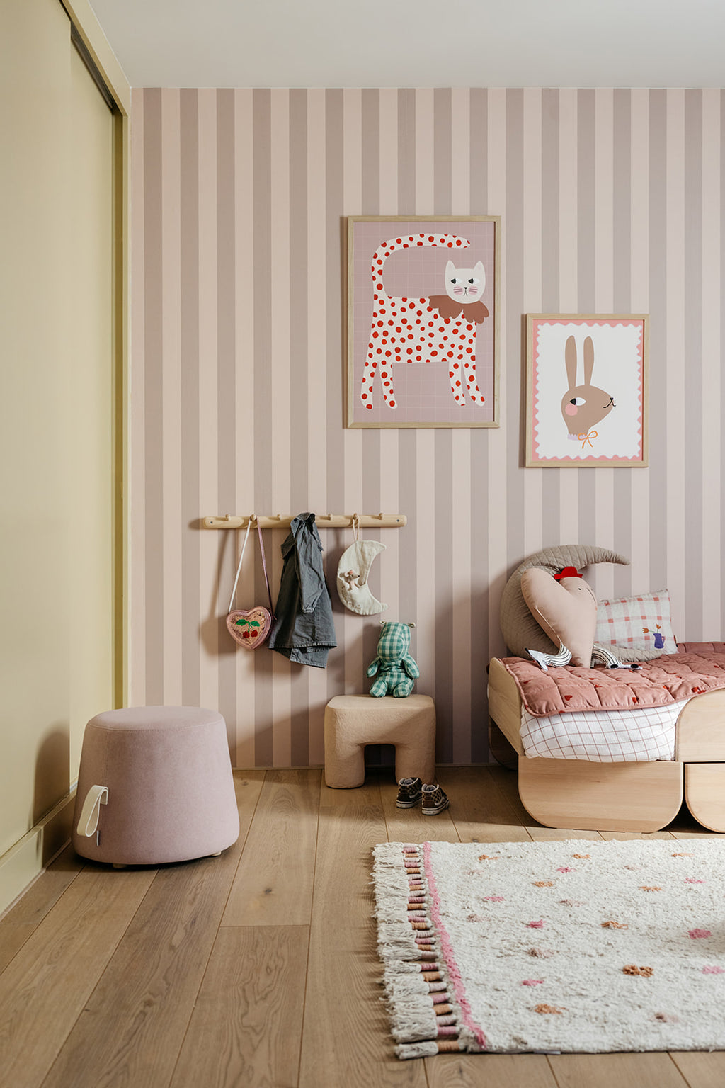 Tapete Isa ist eine Streifen -Tapete mit einer schönen Kombination aus Pastellpfirsich und weichem Braun. Weich und subtil, doch voller Farbe und Wärme. Perfekt für ein ruhiges Kinderzimmer oder eine Spielecke. Kombinieren Isa Tapete Frouk Für einen spielerischen und einzigartigen Look!