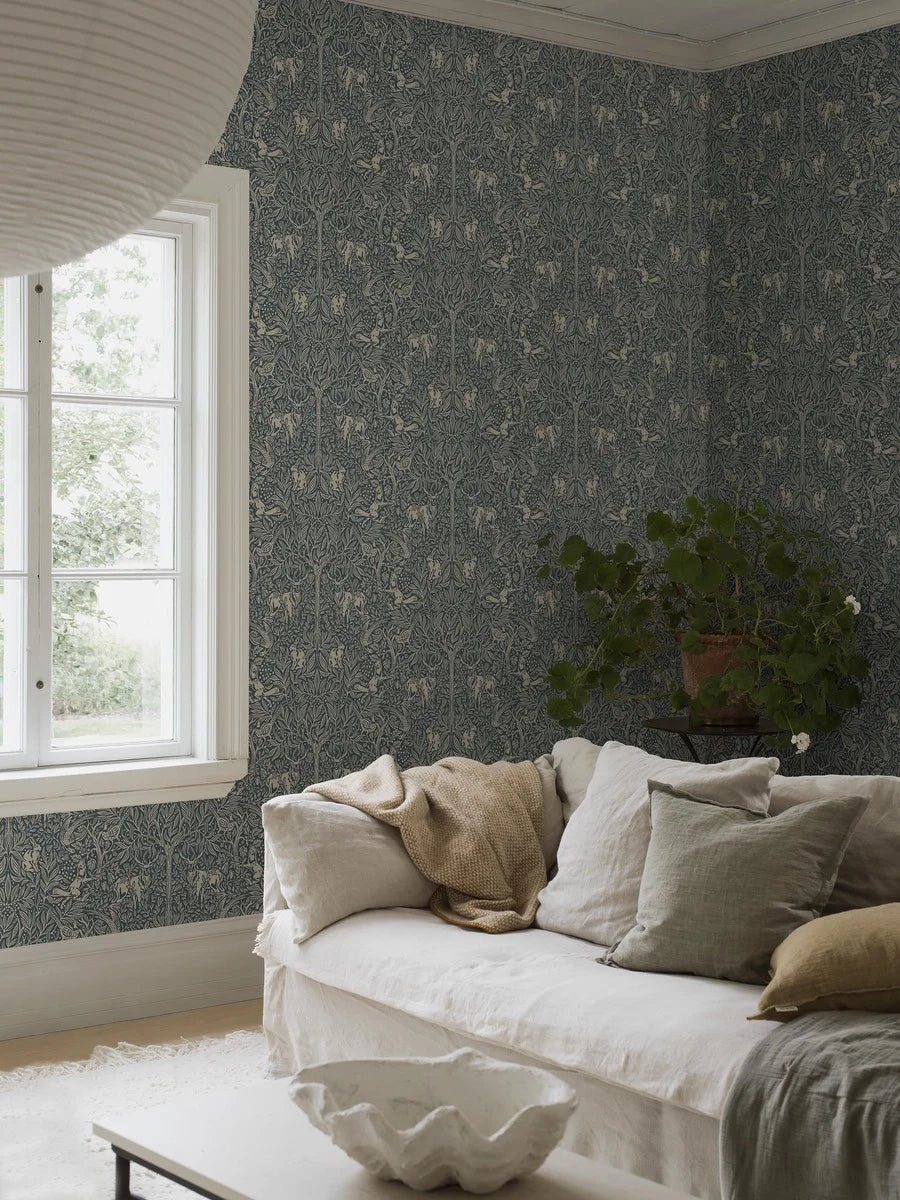 Designed byNoomi SpangeInspired by the Arts & Crafts style, this design combines traditional charm with timeless elegance. Ideal as a woodland wallpaper in a child's room, but also beautiful in a hallway, bedroom, or living room.