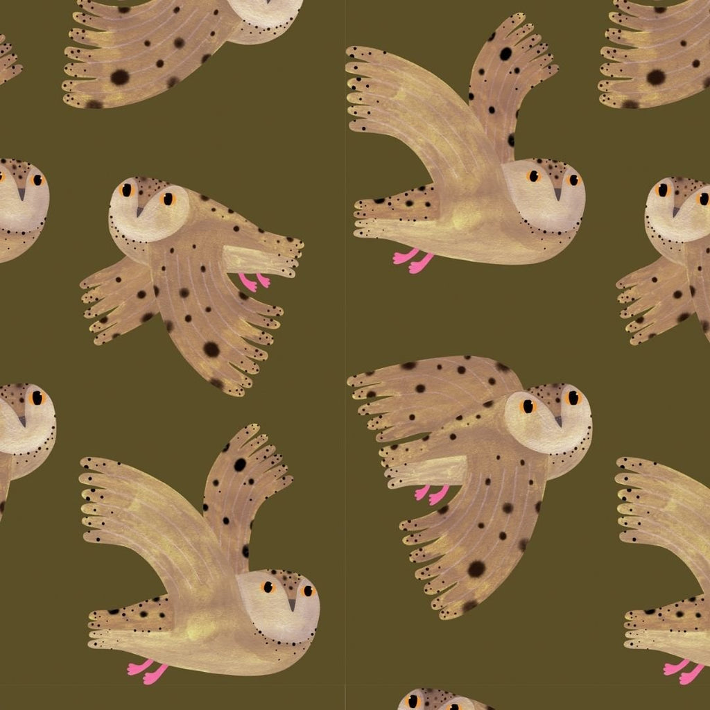 What makes this design so special? It's one unique animal wallpaper that you don't see anywhere else. Look at the subtle details: the playful pink feet of the owl form an unexpected and cheerful color accent that makes any room sparkle.