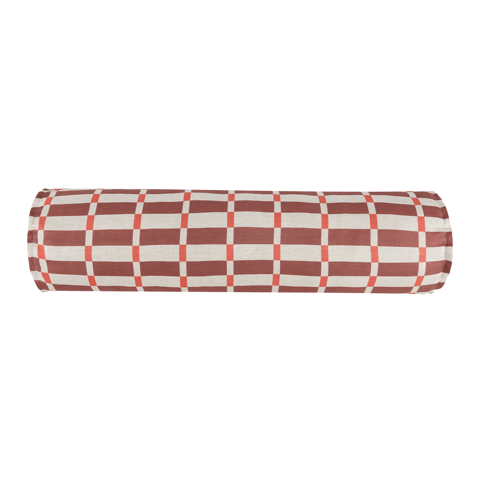 Nobodinoz Cliff Roller Cushion Maroon Red Mosaic – stylish linen cylinder cushion
