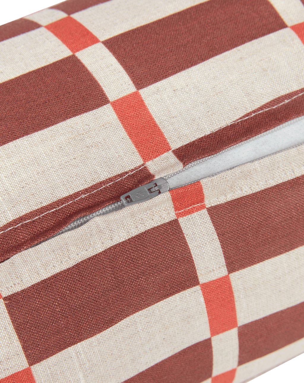 Bring warmth and elegance into your home with it Nobodinoz Cliff Roll Cushion Maroon Red Mosaic. This beautiful cylinder cushion from the Cliff collection combines the refined look of French linen with the playful character of Nobodinoz's signature prints. The graphic mosaic pattern in deep maroon-red tones instantly adds character to any room - from living room to children's room.