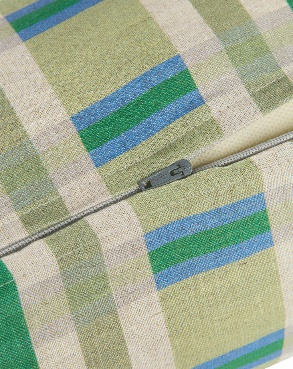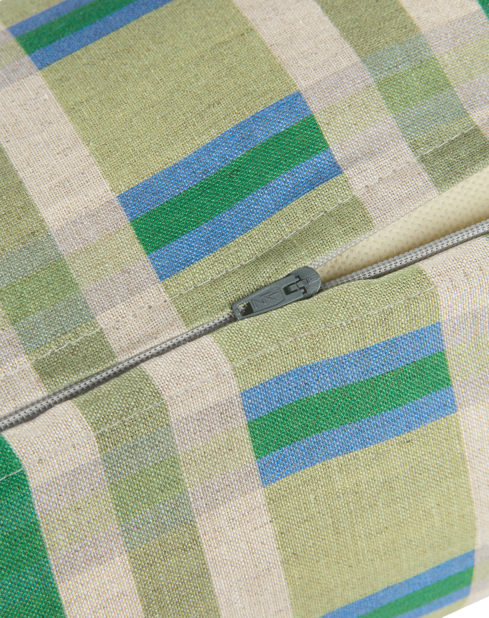 It Nobodinoz Cliff roller cushion in Green Tartar brings peace and refinement into your home. This stylish cylinder cushion from Cliff collection is made of 100% French linen and has an elegant tartan check pattern in soft green and beige tones. A timeless eye-catcher for the sofa, bed or children's room.