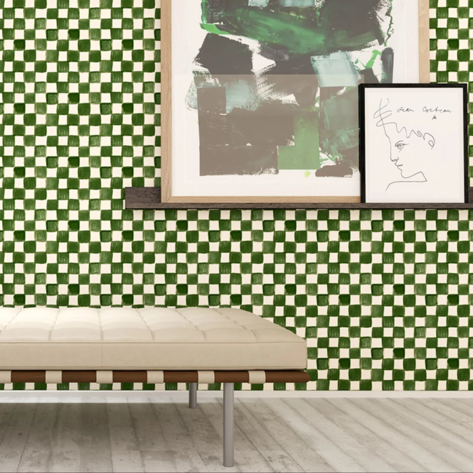 Pique-nique Mousse – Green checked wallpaper for a cool and stylish children's room