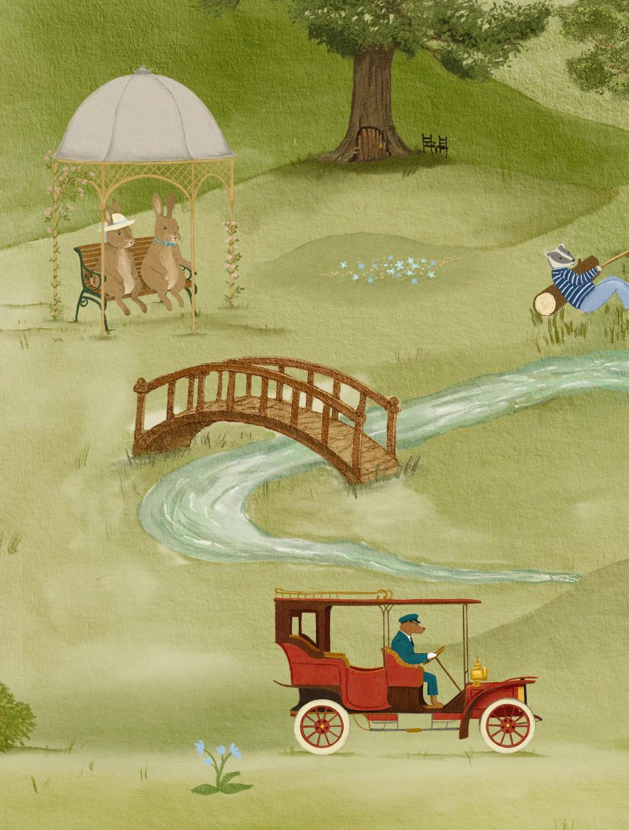 Unique children's wallpaper inspired by Beatrix Potter and the Lake District