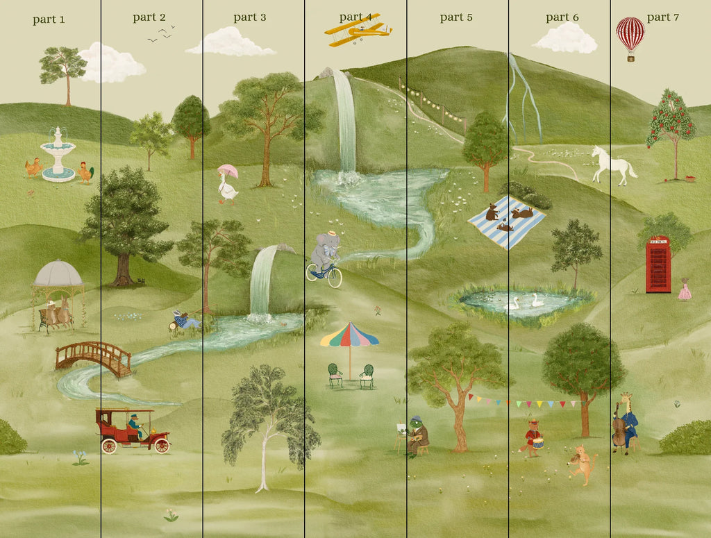 Do you dream of a children's room that feels like a story? Then the Lake District Mural from Atelier Florentine the perfect start. This special children's wallpaper is an ode to the world of Beatrix Potter and brings the enchantment of the English Lake District to life on the wall. Think of curious rabbits, playing ducks and magical landscapes – as if you have stepped into a picture book.