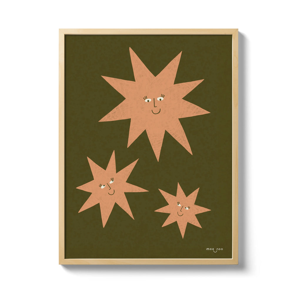 Combina el Cartel de la noche estrellada con otros estampados de la colección Maa-noo para crear una pared divertida, elegante y llena de carácter.