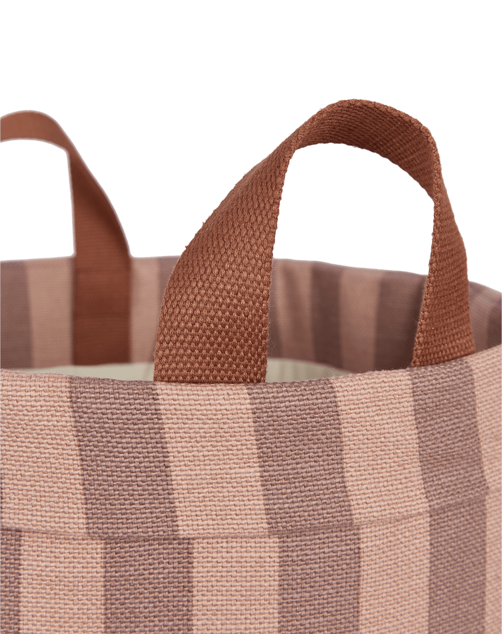 Combina la cesta Rayas Rosa Malva con pufs, cojines o pufs a juego de la colección Nobodinoz Home para conseguir un conjunto suave y armonioso.