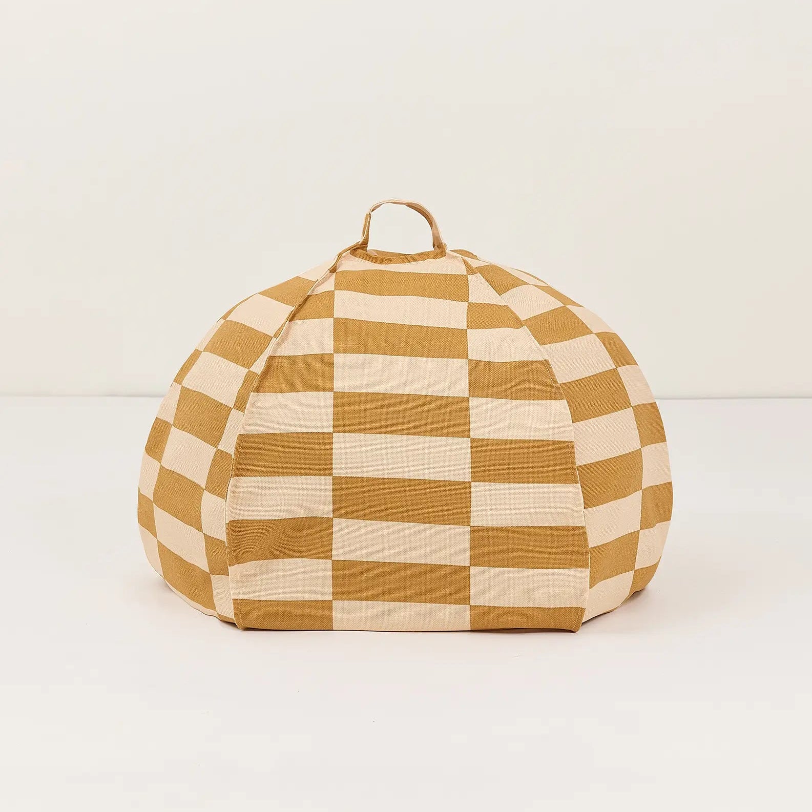 el Nobodinoz Los azulejos redondos Beanbag Mostaza y Arena son como un regalo suave para cualquier habitación. Este puf infantil redondo de la colección Vibes te invita a relajarte, leer o simplemente no hacer nada. Gracias a su peso ligero y al asa, podrás llevar el puf sin esfuerzo de la habitación de los niños al salón.