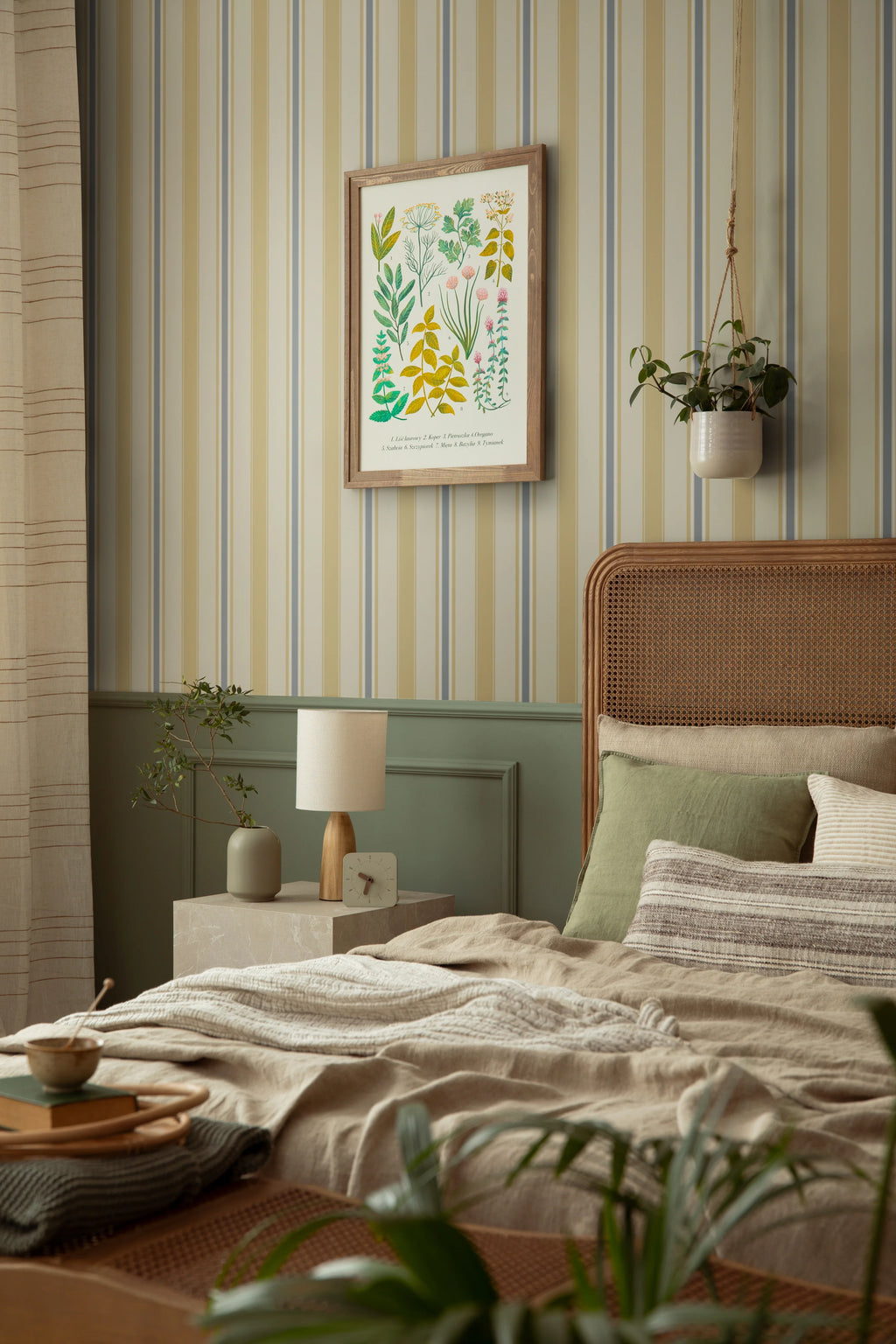 Mooi als accentmuur achter het bed of bureau, maar ook geschikt om rondom te gebruiken dankzij het subtiele patroon.