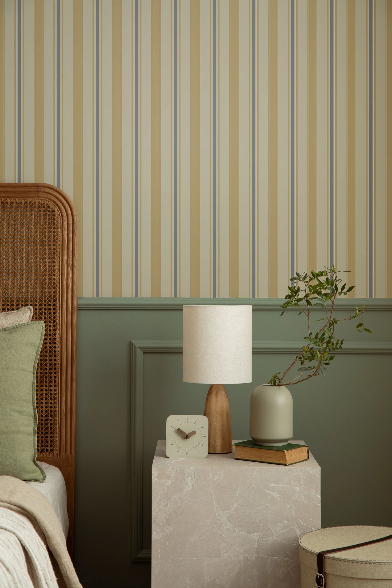 Summer Gray Pompy Lake is een verfijnd streepbehang met een iets intensere, blauwere streep dan Sky. De subtiele variatie in lijnbreedtes en zachte toonovergangen zorgen voor een rustig ritme op de muur dat modern oogt, maar tegelijkertijd tijdloos blijft.