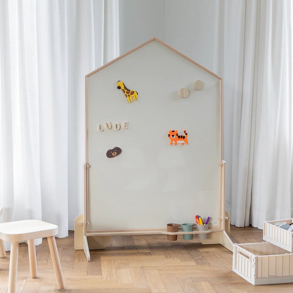 Avec le Ensemble d'aimants en bois Alphabet de Projet Noriter x LUDE Les enfants apprennent à reconnaître et à distinguer les lettres de manière ludique.