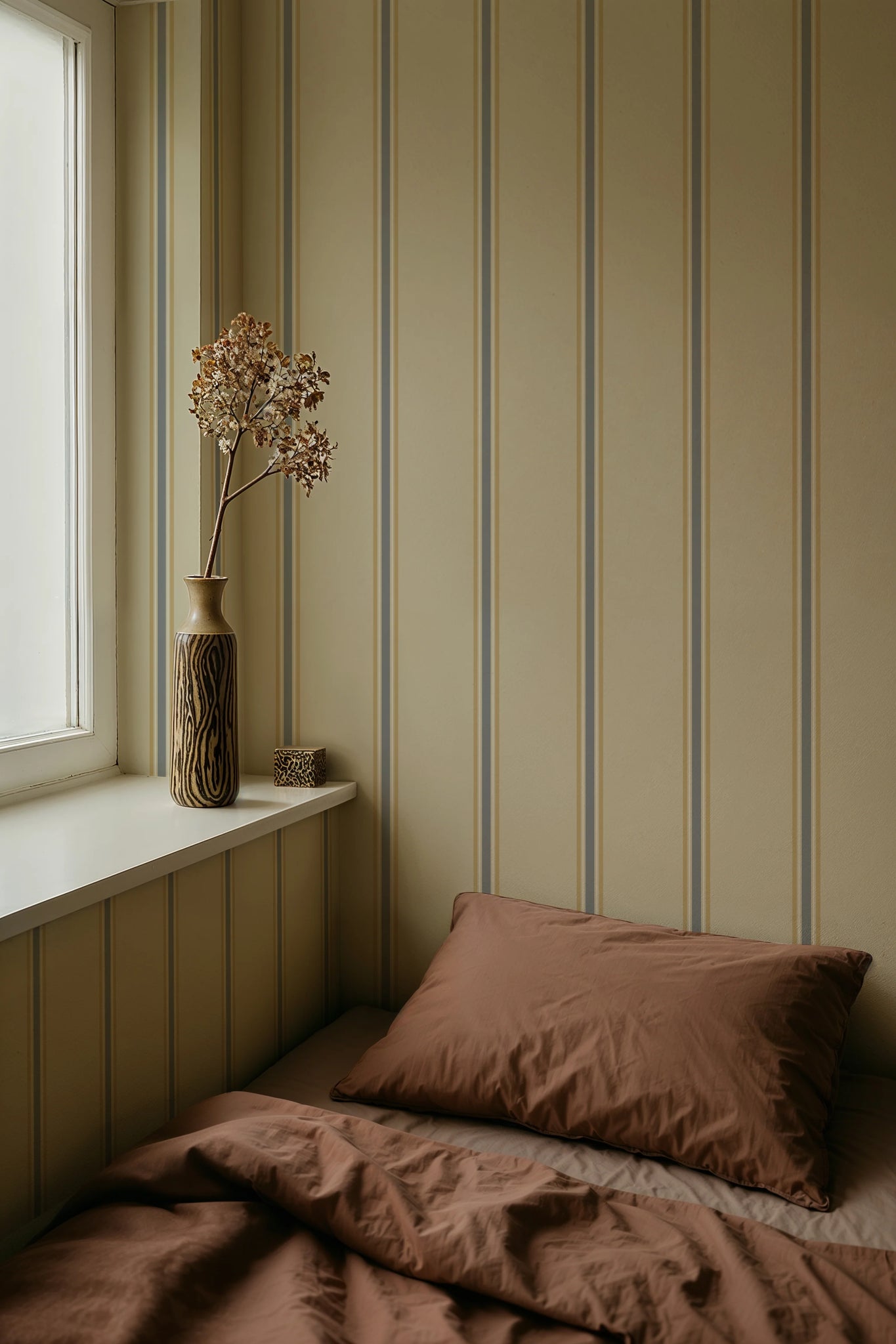 Dit is geen standaard streepbehang — de delicate variatie in lijn en kleur zorgt voor balans, rust en verfijning in elke ruimte. Perfect voor een stijlvolle babykamer, kinderkamer of tienerkamer waar je een kalme basis wilt creëren met karakter.
