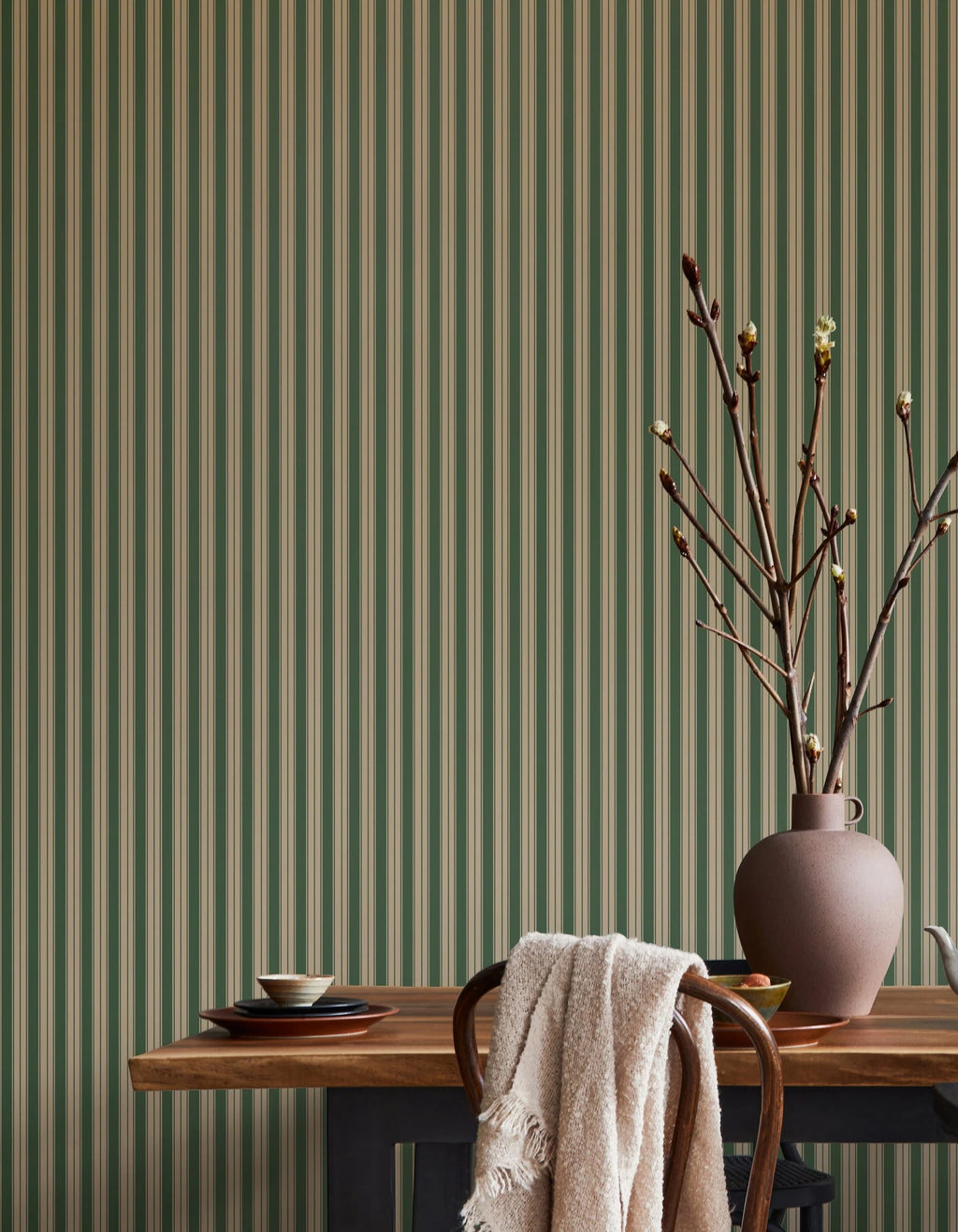 Summer Gray Nito Green is een verfijnd streepbehang waarin verschillende lijnbreedtes en subtiele kleurnuances samenkomen in een modern, tijdloos ritme. Dit is geen standaard streep, maar een elegante interpretatie met diepte en balans.