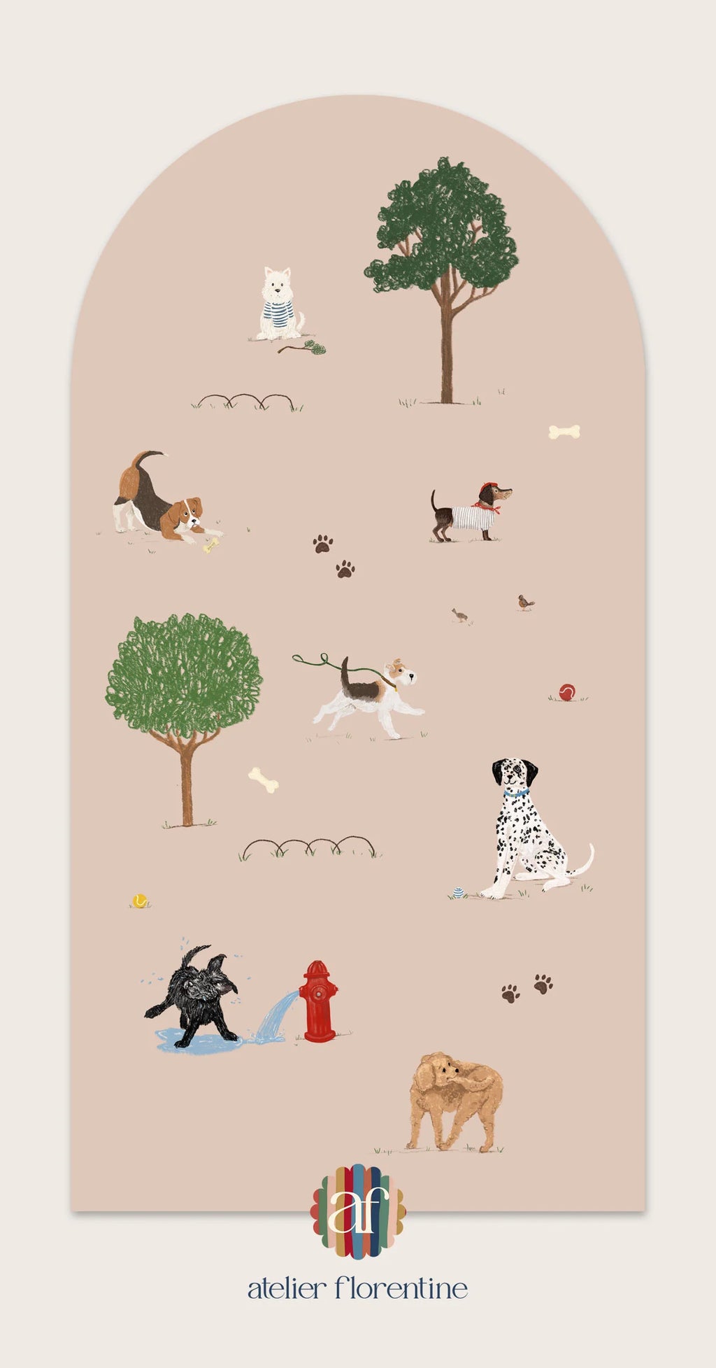 Atelier Florentine - Adesivo da parete Peel & Stick - Cani rosa