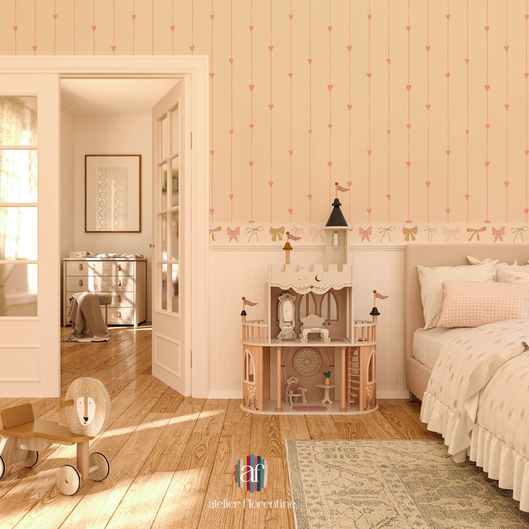 Aggiungi un tocco di fascino alla cameretta del tuo bambino con il Bordo di carta da parati autoadesiva Fiocchi di Atelier Fiorentino. Questo staccare e incollare il bordo della carta da parati Con i fiocchi dolci puoi dare alle pareti, ai mobili o agli angoli di gioco un aspetto elegante e giocoso in un batter d'occhio. Senza colla, senza problemi – semplicemente sbucciare, incollare e fatto!