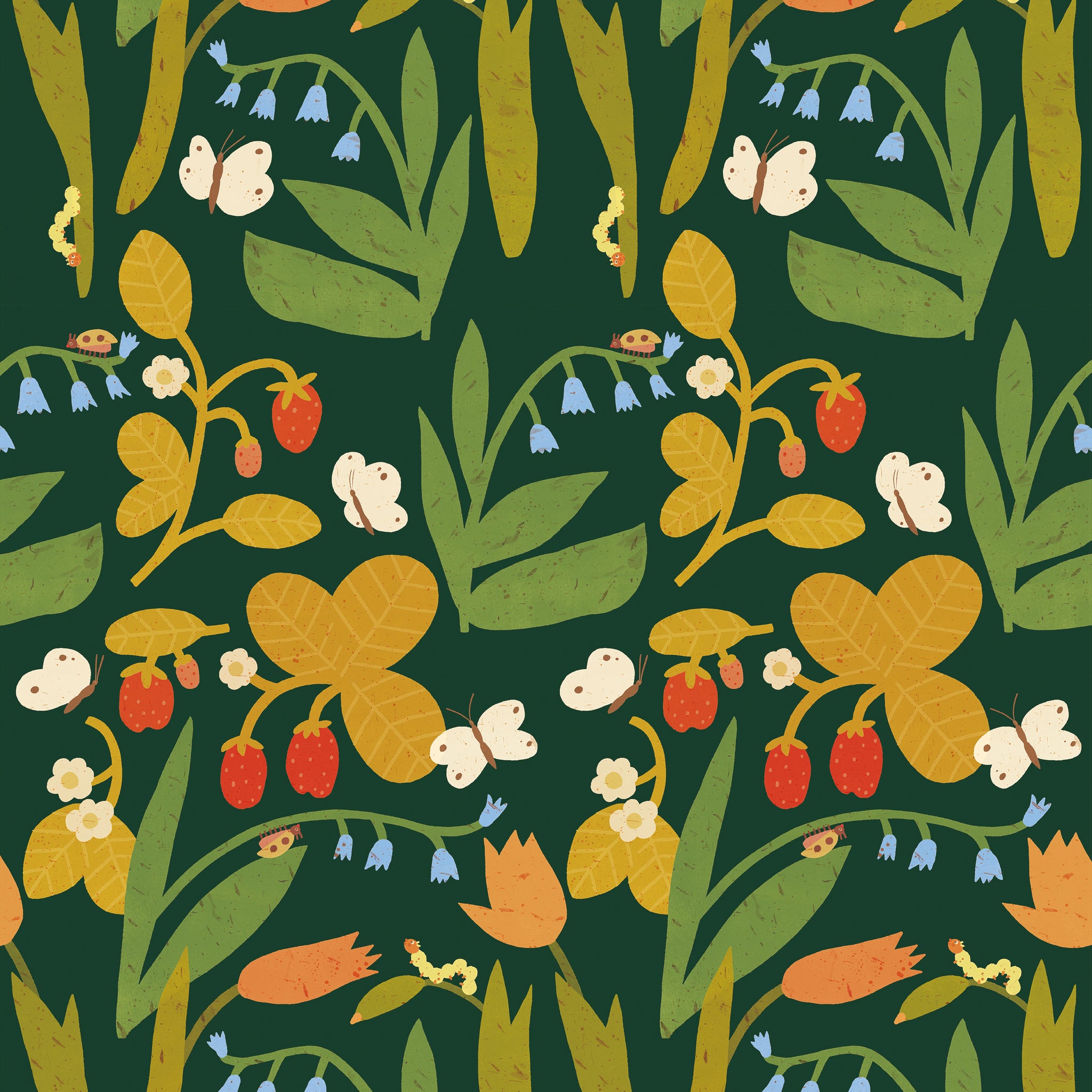 Behangstaal Meet Me at the Wall - Strawberry field - Dark pine - Lotte Dirks