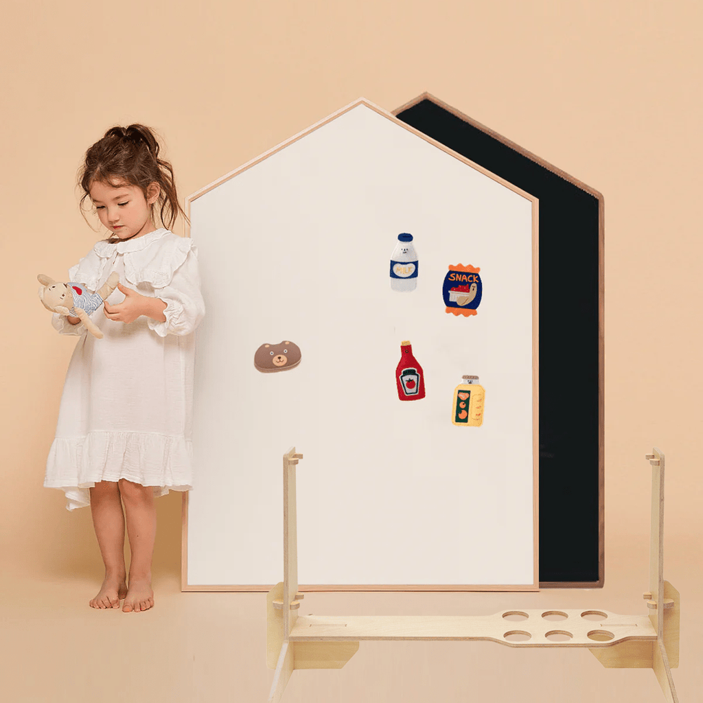 Esso Lavagna magnetica bifacciale Lille Hus di Noriter Project x LUDE è la perfetta combinazione di apprendimento, gioco e creatività. Con un lato come lavagna e l'altro come lavagna, questa elegante lavagna offre infinite possibilità per giovani artisti ed esploratori curiosi.