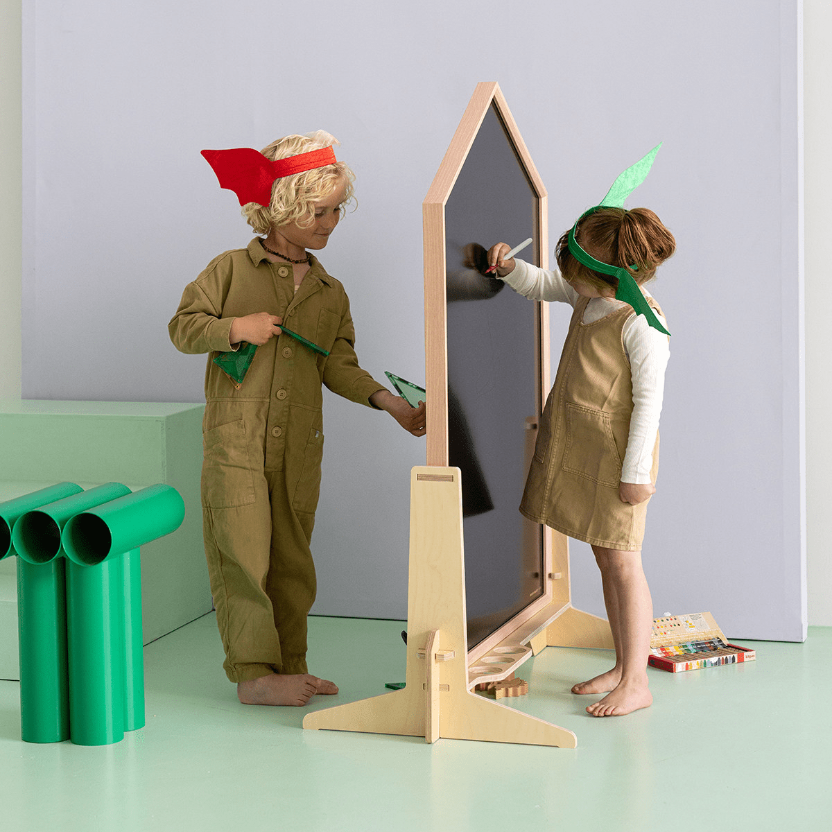 Con il suo robusto bordo in legno, le dimensioni generose e il design minimalista, il Lille Hus non è solo il preferito dai bambini, ma attira anche l'attenzione in ogni interno. Disegna con i pennarelli per lavagna, scrivi con il gesso per finestre o gioca all'infinito con i magneti: in questo modo stimoli in modo giocoso la creatività, le capacità motorie e la concentrazione.