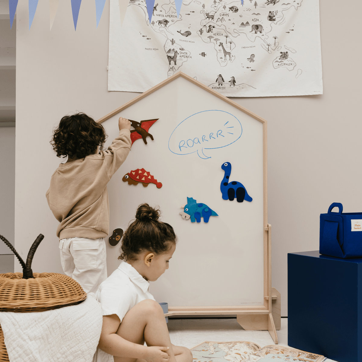 Il set è perfetto per l'uso sulla lavagna magnetica o sulla lavagna Lille Hus e invita al gioco fantasioso ed educativo.