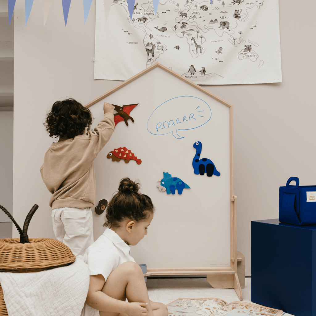 Con il set magnetico Dinos in feltro di Noriter Project x LUDE, i bambini si tuffano nell'affascinante mondo preistorico dei dinosauri.
