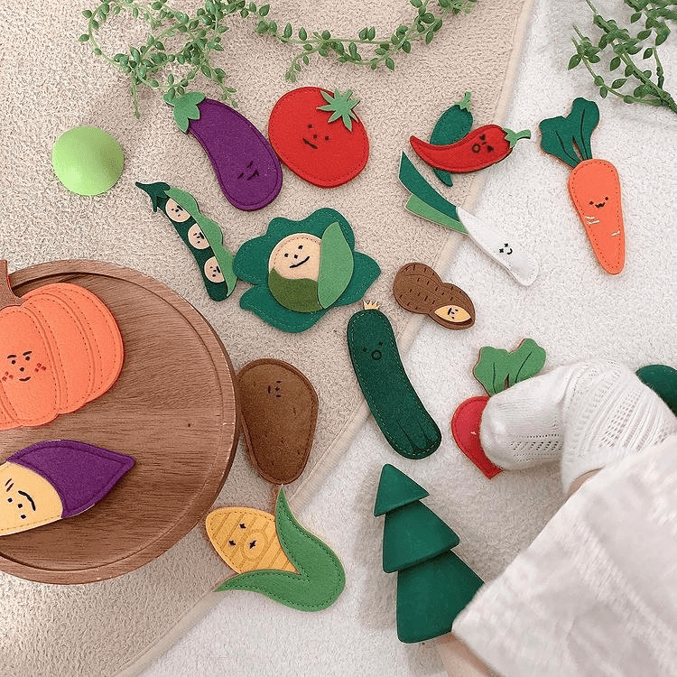 Dando un nome ai magneti, i bambini imparano nomi, colori e forme di diverse verdure. Possono anche parlare di sapori e proprietà, che li rendono loro abilità linguistiche sviluppo e altro ancora prendere coscienza di un'alimentazione sana.