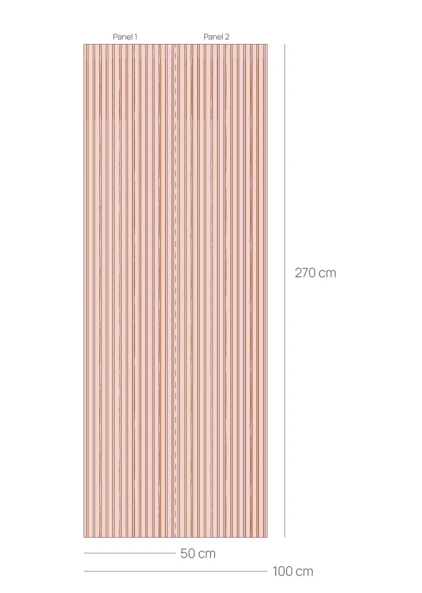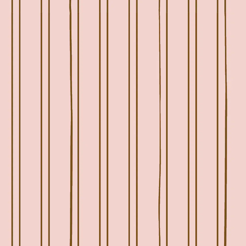 Bibelotte behang Gestreept Bloesem is een stijlvolle en tijdloze streep met een warm, verrassend contrast. De zachte poederroze ondergrond in combinatie met de donkerbruine streep zorgt voor rust, diepte én karakter in de ruimte.