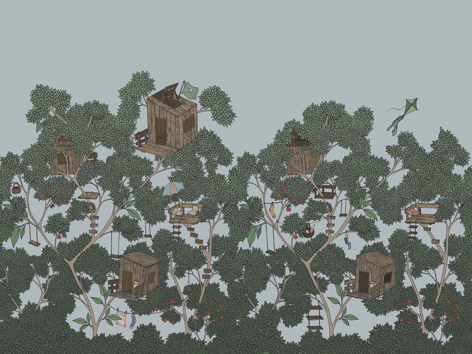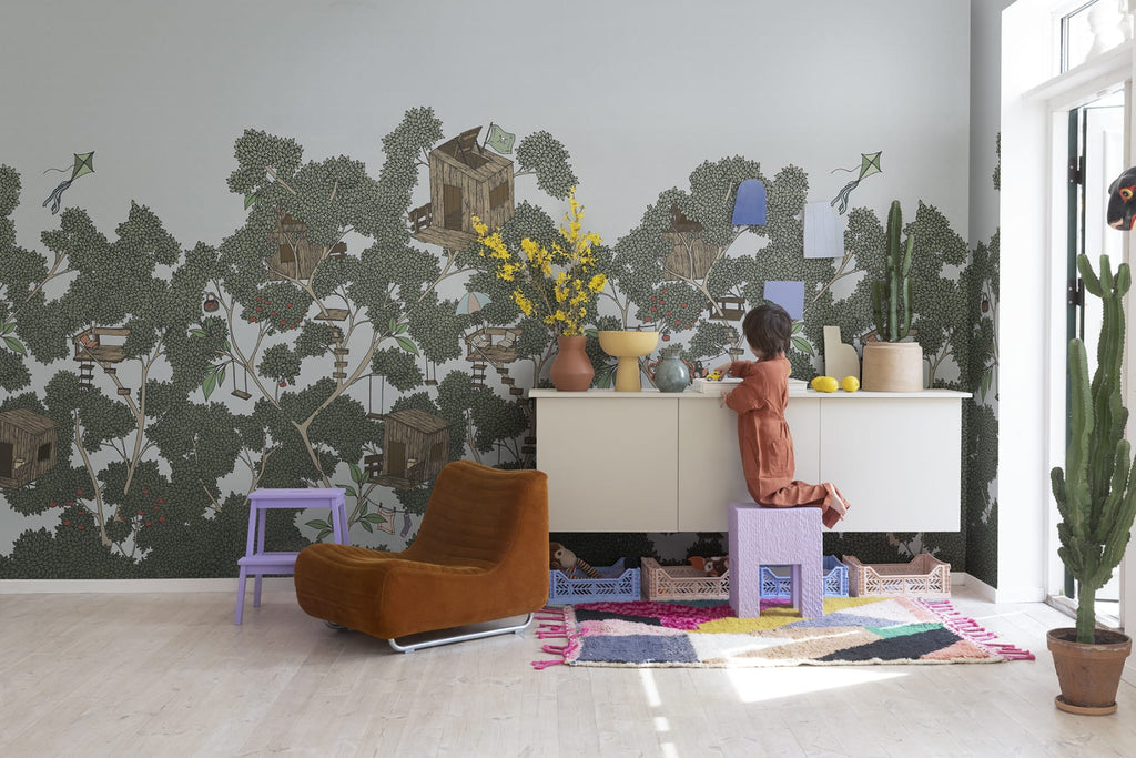 Droom je wel eens van spelen tussen de boomtoppen? Met de Rebel Walls Playground Summer mural wordt die droom werkelijkheid. Dit speelse kinderbehang neemt je mee naar een magische plek waar boomhutten worden gebouwd, avonturen ontstaan en vriendschappen bloeien. Een ontwerp vol details en verrassingen, perfect om kinderen eindeloos te laten fantaseren en verhalen te verzinnen.