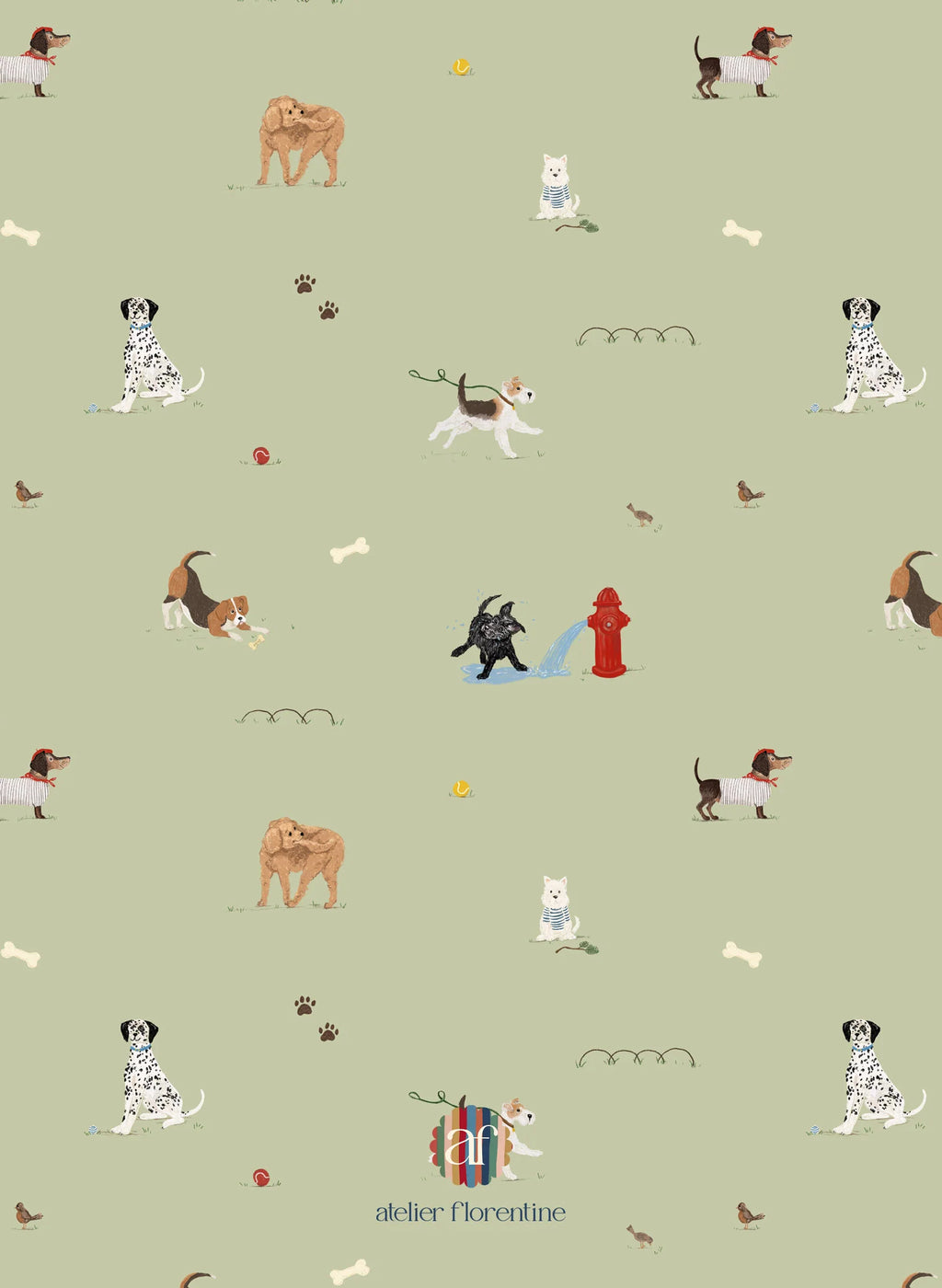 Behangstaal Atelier Florentine - Hondjes - Groen