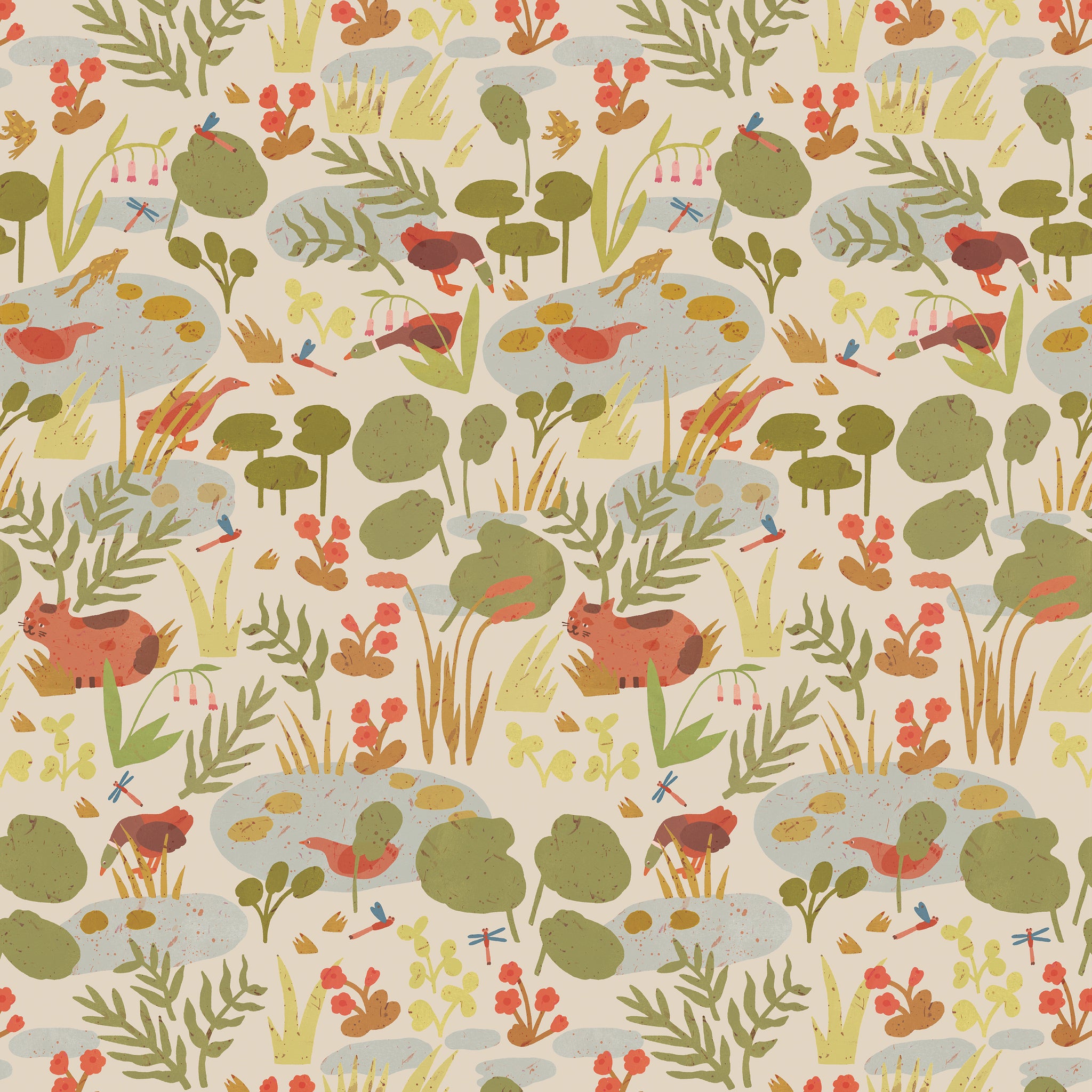 Behangstaal Meet Me at the Wall - Lily pond - Oat - Lotte Dirks