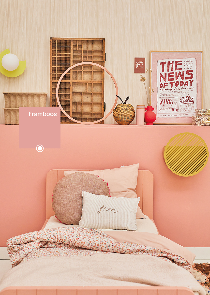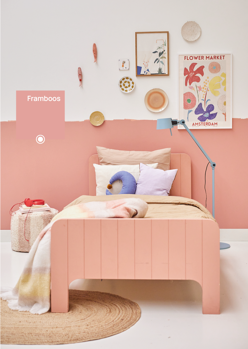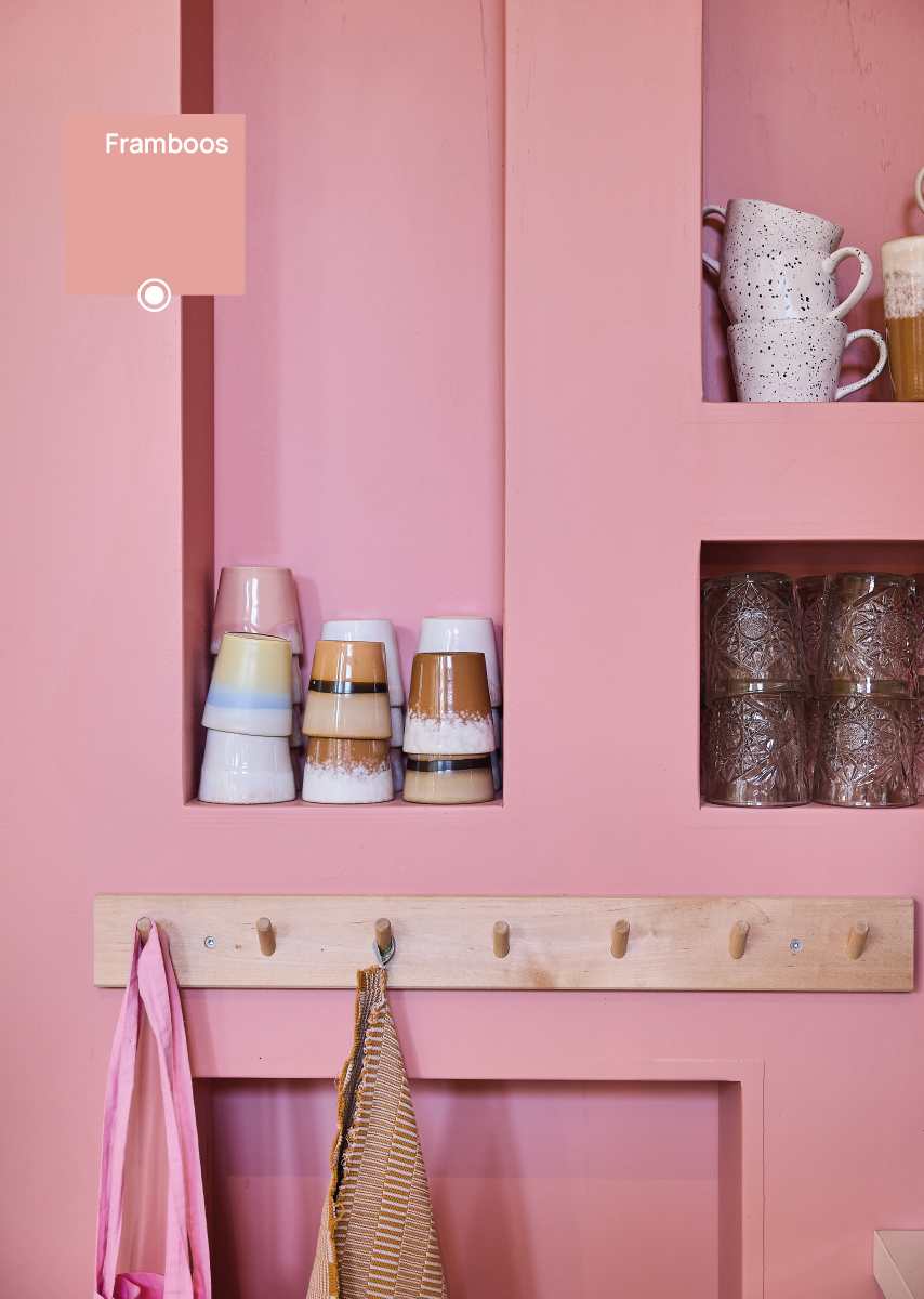 Bibelotte verf Framboos is een frisse roze tint met karakter — speels, maar niet té zoet. De kleur heeft een mooie balans tussen levendigheid en zachtheid, waardoor hij perfect past in een babykamer, kinderkamer of creatieve speelruimte. Framboos geeft energie aan de ruimte zonder overheersend te worden en combineert prachtig met warm wit, zandtinten of naturel hout. Verkrijgbaar als muurverf en lakverf.