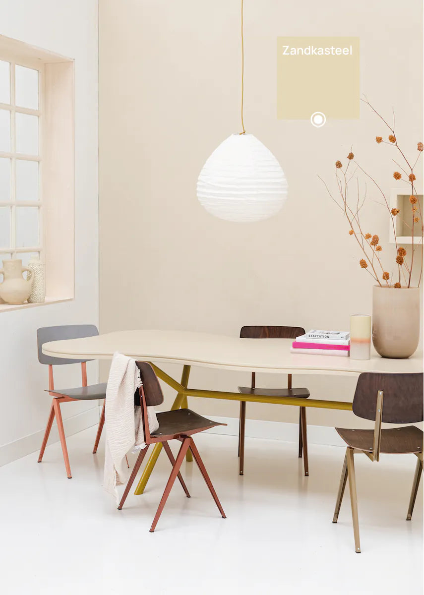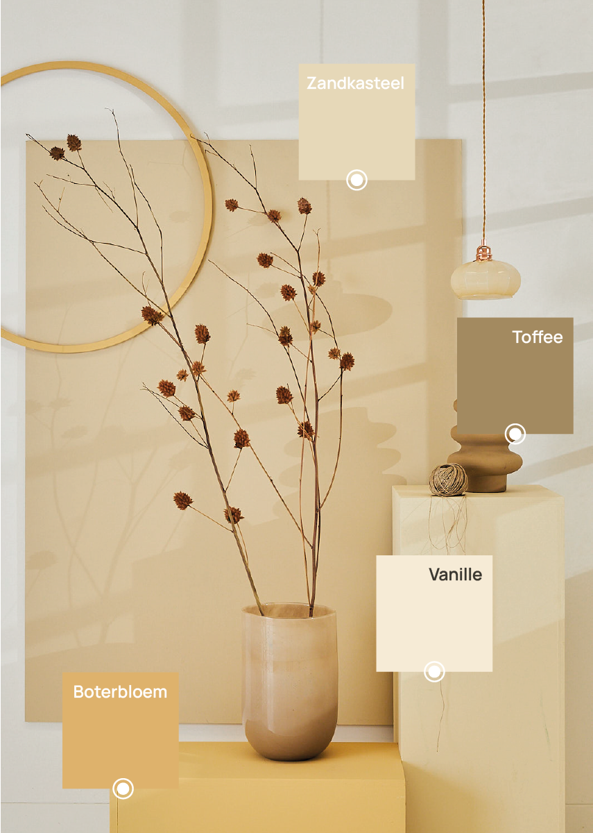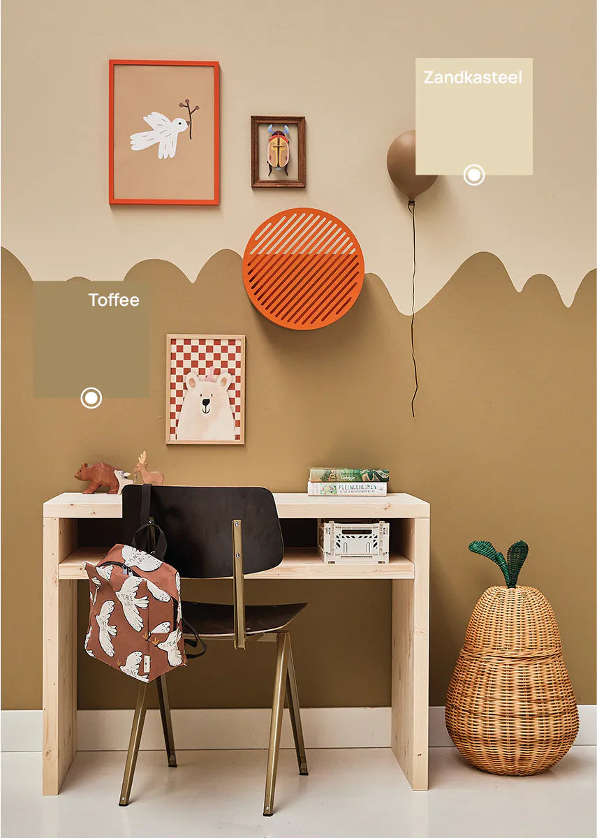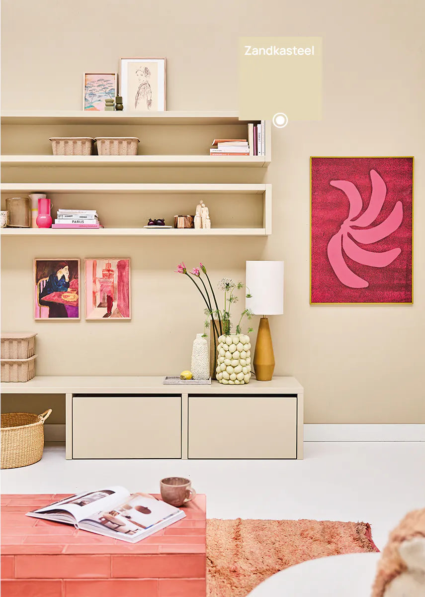 Bibelotte verf Zandkasteel is een neutrale beige tint met een warme gele ondertoon. Deze kleur brengt direct zachtheid en warmte in een babykamer, kinderkamer of woonkamer en vormt een tijdloze basis voor elk interieur. Zandkasteel combineert prachtig met hout, rotan en natuurlijke stoffen en laat zowel zachte pastels als diepere accentkleuren mooi uitkomen. Verkrijgbaar als muurverf en lakverf.