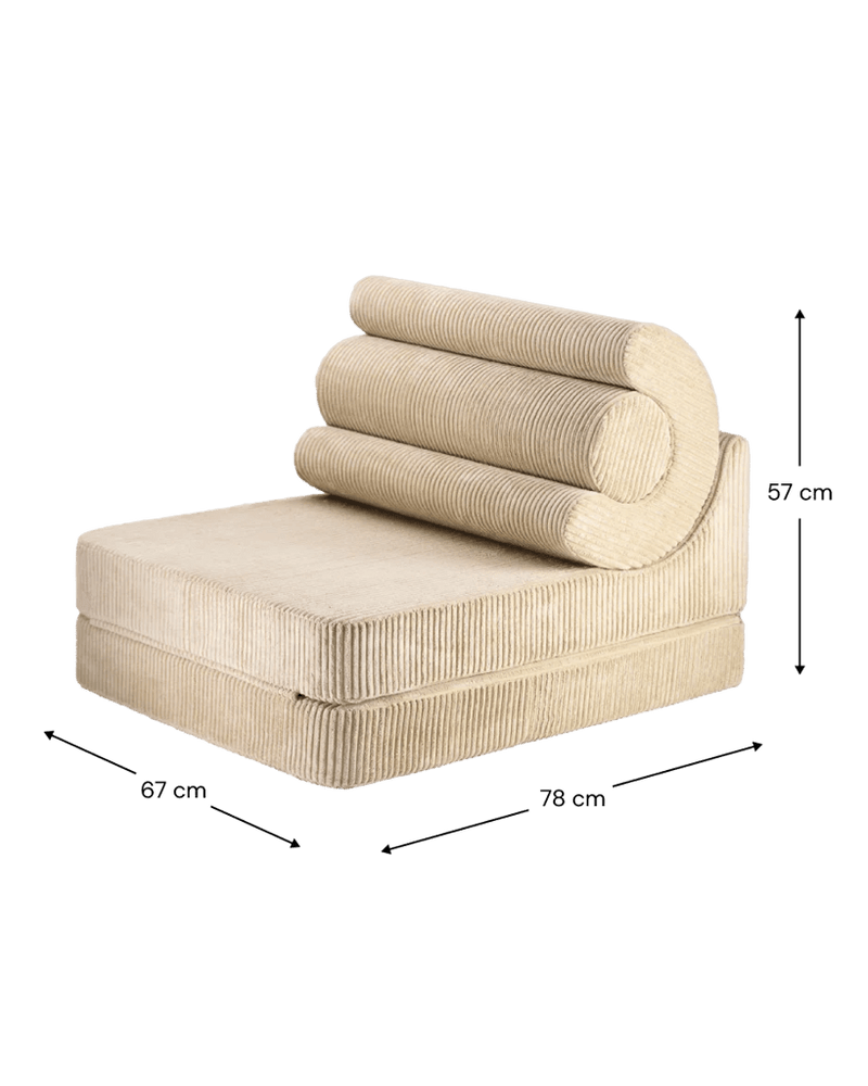 De Wigiwama Flipster Brown Sugar is een echte eyecatcher met zijn warme ribfluwelen stof in een natuurlijke tint. Het zachte zitcomfort, in combinatie met de mogelijkheid om te relaxen of te spelen, maakt dit tot een must-have voor elk gezin. Of je nu zoekt naar een speelbank voor de kinderkamer, een zitzak voor kinderen met afneembare hoes, of een multifunctioneel kinderzitmeubel, de Flipster biedt het allemaal.