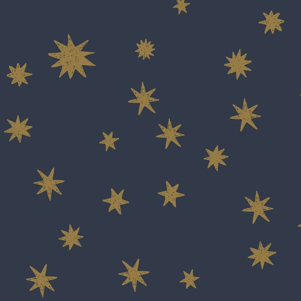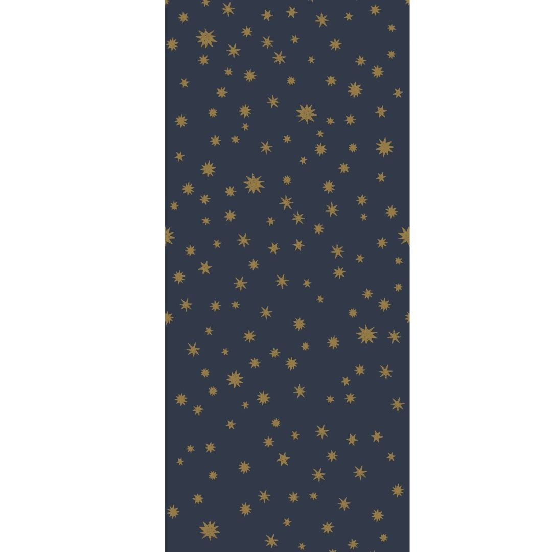 Met Starry Night – Blauw met kaki sterren brengt ontwerper Joëlle Wehkamp een stoere en speelse variant van haar sterrenpatroon. Dit sterren behang laat kaki gekleurde sterren in verschillende groottes dansen over een diepe blauwe achtergrond. De combinatie van blauw en kaki geeft het behang een moderne, tijdloze uitstraling die perfect past in een jongens babykamer of kinderkamer.