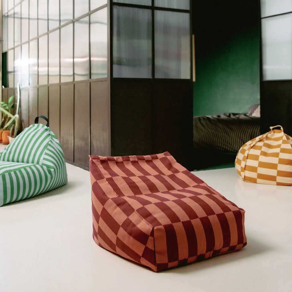 Breng warmte, kleur en comfort in huis met de Nobodinoz Beanbag Maroon Tiles – Red.