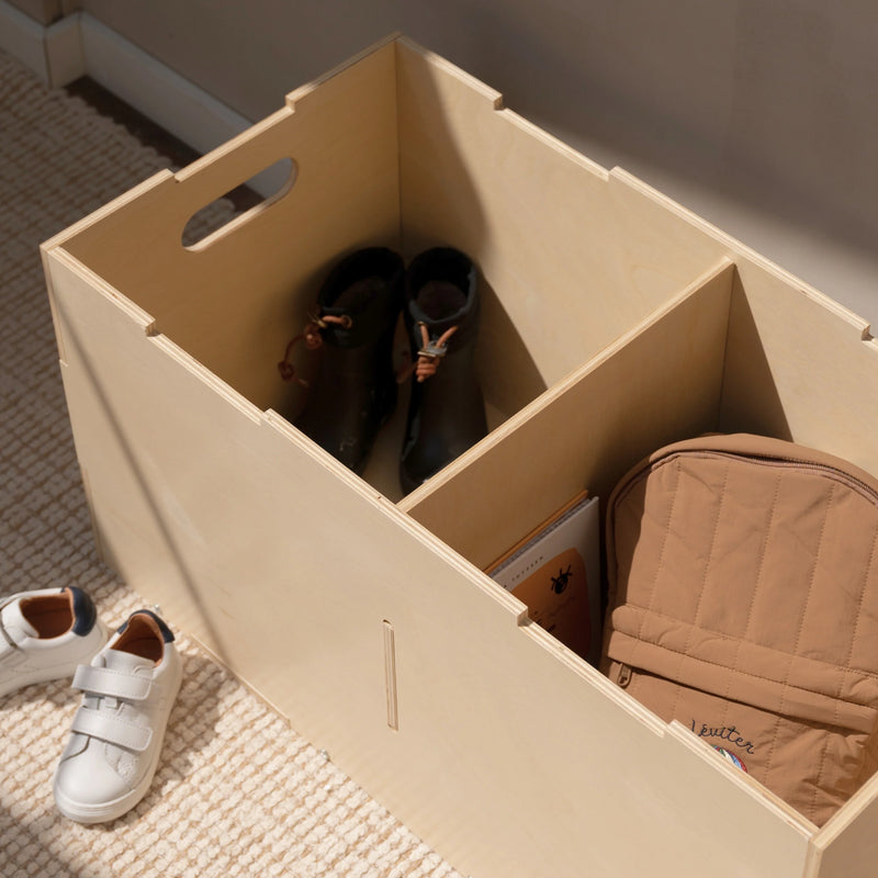 De Cube Long is gemaakt van FSC-gecertificeerd berkenmultiplex en afgewerkt met een watergedragen, kindveilige lak. De ruime binnenkant kan worden opgedeeld in twee vakken voor efficiënte organisatie. Gebruik de Cube Long als zitbankje, opbergkist, speeltafel of zelfs als boekenkast wanneer je hem rechtop zet. Voor extra flexibiliteit kunnen er wieltjes aan toegevoegd worden (apart verkrijgbaar). Bestel ze hier