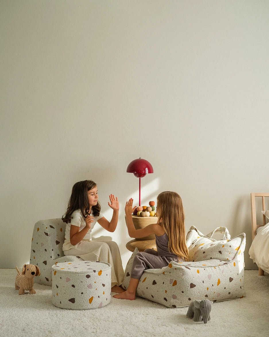 Wigiwama Terrazzo Marmeren Ronde Poef – Stijlvolle Kinderpoef van Bouclé & Chenille
