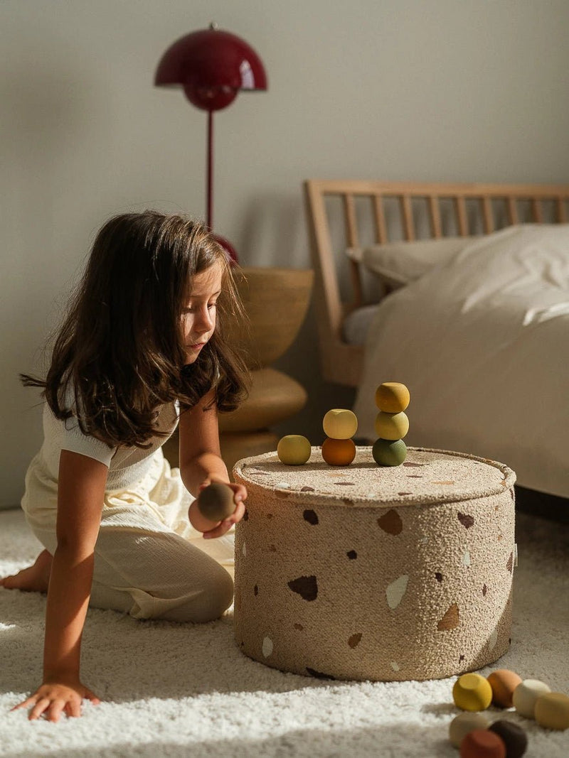 Wigiwama Terrazzo Ronde Poef – Zandkleurig | Stijlvolle Kinderpoef van Bouclé & Chenille