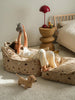 De Wigiwama Terrazzo Zand Vierkante Poef is ontworpen met het oog op zowel esthetiek als functionaliteit. Dankzij de stevige, hoogwaardige houtpulpkarton constructie en de luxe materialen onderscheidt deze poef zich duidelijk van standaard, dunne poefs. Het slimme ontwerp met ritssluiting maakt onderhoud eenvoudig, zodat de poef altijd fris en schoon blijft, zelfs bij intensief gebruik in drukbezochte kinderkamers of speelruimtes.