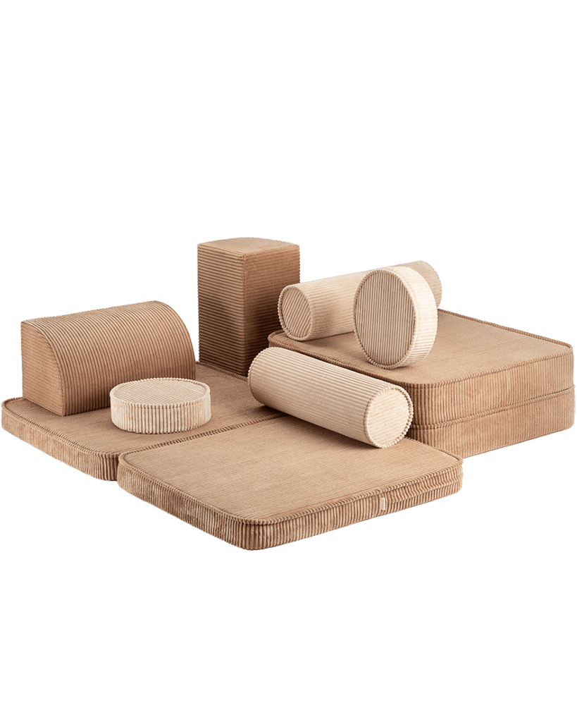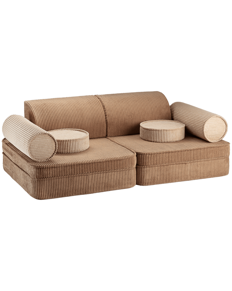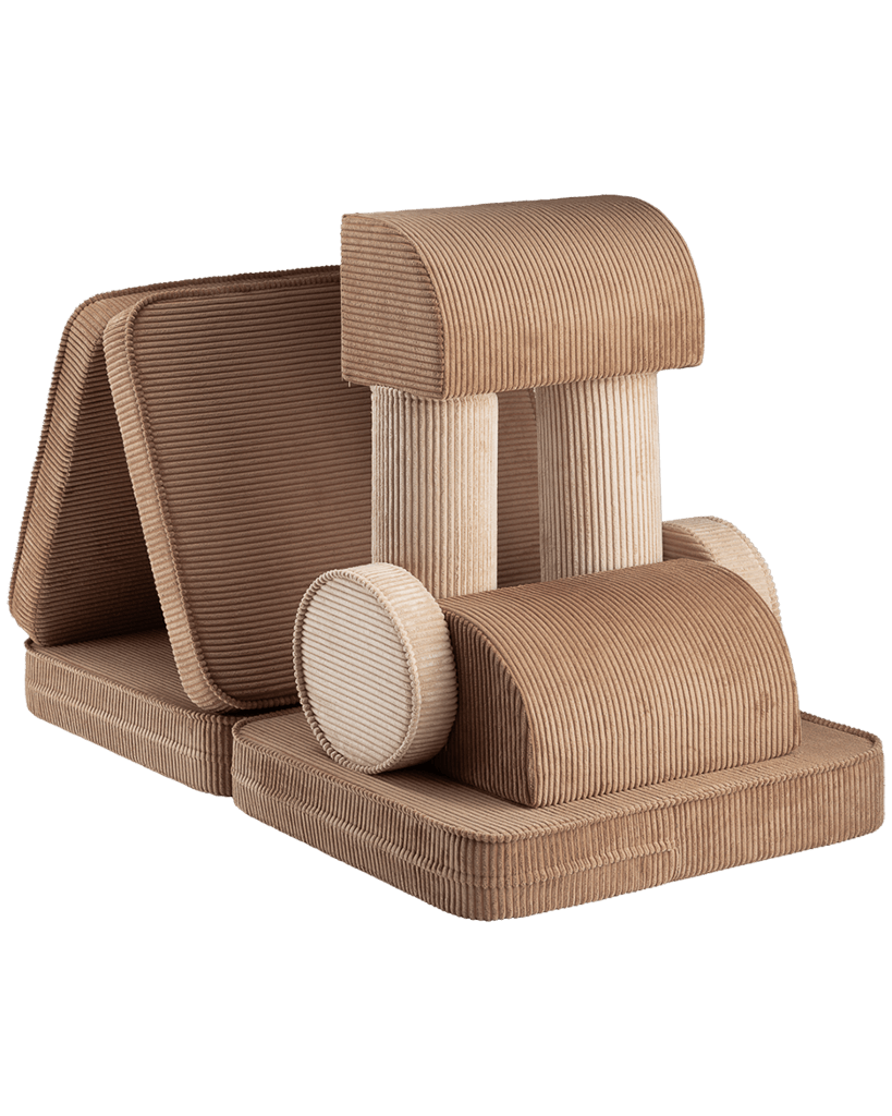 De Wigiwama Settee in Toffee Rib is de perfecte modulaire speelbank voor kinderen die houden van spelen, loungen of even lekker uitrusten. Dankzij het slimme ontwerp met maar liefst 9 losse elementen – waaronder zitkussens, rugleuningen en speelse rolkussens – wordt deze kinderbank in een handomdraai een speelfort, logeermatras of relaxplek.